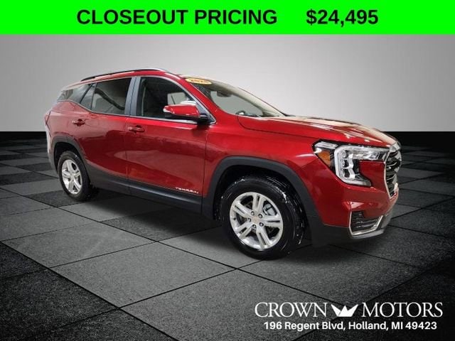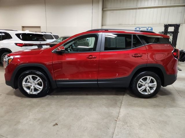 Clean CARFAX. Certified. Volcanic Red Tintcoat 2024 GMC Terrain SLE AWD 9-Speed Automatic 1.5L DOHC ** LOW MILES**, **GM CERTIFIED**, **ACCIDENT FREE**, GMC Certified Pre-Owned Certified, AWD, 2 USB Data Ports w/Auxiliary Input Jack, 3.47 Final Drive Axle Ratio, 4-Way Manual Driver's Seat, 4-Way Manual Front Passenger Seat, 4-Wheel Disc Brakes, 4.2" Multi-Color Driver Information Screen, 6 Speakers, 6-Speaker Audio System Feature, 8-Way Power Driver Seat Adjuster, ABS brakes, Adaptive Cruise Control, Air Conditioning, Alloy wheels, AM/FM radio: SiriusXM, Auto High-beam Headlights, Auto-dimming Rear-View mirror, Automatic temperature control, Bluetooth® For Phone, Brake assist, Bumpers: body-color, Cold Air Grille Shutter, Compass, Delay-off headlights, Driver & Front Passenger Heated Seats, Driver Convenience Package, Driver door bin, Driver vanity mirror, Dual front impact airbags, Dual front side impact airbags, Dual-Zone Automatic Climate Control, Electronic Stability Control, Emergency communication system: OnStar and GMC connected services capable, Four wheel independent suspension, Front anti-roll bar, Front Bucket Seats, Front Center Armrest, Front reading lights, Fully automatic headlights, GMC Pro Safety Plus, Heated door mirrors, Illuminated entry, Lane Change Alert w/Side Blind Zone Alert, Low tire pressure warning, Occupant sensing airbag, Outside Heated Power-Adjustable Mirrors, Outside temperature display, Overhead airbag, Overhead console, Panic alarm, Passenger door bin, Passenger vanity mirror, Power door mirrors, Power Driver Lumbar Control, Power Programmable Rear Liftgate, Power steering, Power windows, Preferred Equipment Group 3SA, Premium Cloth Seat Trim, Radio data system, Radio: GMC Infotainment Audio System w/7" Display, Rear anti-roll bar, Rear Cross-Traffic Alert, Rear Park Assist, Rear seat center armrest, Rear window defroster, Rear window wiper, Remote keyless entry, Remote Start, Roof-Mounted Luggage Rack Side Rails, Safety Alert Seat, Security system, SiriusXM, Speed control, Speed-sensing steering, Split folding rear seat, Spoiler, Steering wheel mounted audio controls, Tachometer, Telescoping steering wheel, Tilt steering wheel, Traction control, Trip computer, Variably intermittent wipers, Wheel Locks, Wheels: 17" x 7" Silver Painted Aluminum, Wireless Apple CarPlay/Wireless Android Auto, AWD.