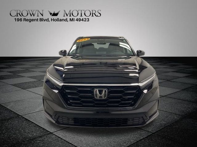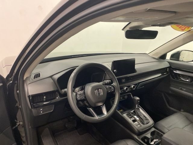 CARFAX One-Owner. Clean CARFAX. Certified. Black 2023 Honda CR-V EX-L AWD CVT 1.5L I4 DOHC 16V **ONE OWNER**, ** LOW MILES**, **HONDA CERTIFIED**, **LOCAL TRADE IN**, HondaTrue Certified Certified, AWD, 4-Wheel Disc Brakes, 5.64 Axle Ratio, 8 Speakers, ABS brakes, Adaptive Cruise Control: Adaptive Cruise Control (ACC) with Low-Speed Follow, Air Conditioning, Alloy wheels, AM/FM radio: SiriusXM, Auto High-beam Headlights, Auto-dimming Rear-View mirror, Automatic temperature control, Brake assist, Bumpers: body-color, Compass, Delay-off headlights, Driver door bin, Driver vanity mirror, Dual front impact airbags, Dual front side impact airbags, Electronic Stability Control, Exterior Parking Camera Rear, Four wheel independent suspension, Front anti-roll bar, Front Bucket Seats, Front Center Armrest, Front dual zone A/C, Front reading lights, Fully automatic headlights, Heated door mirrors, Heated Front Bucket Seats, Heated front seats, Illuminated entry, Knee airbag, Leather Seat Trim, Leather Shift Knob, Leather steering wheel, Low tire pressure warning, Memory seat, Occupant sensing airbag, Outside temperature display, Overhead airbag, Overhead console, Panic alarm, Passenger door bin, Passenger vanity mirror, Power door mirrors, Power driver seat, Power Liftgate, Power moonroof, Power passenger seat, Power steering, Power windows, Radio data system, Radio: 320-Watt AM/FM/HD/SiriusXM Audio System, Rear anti-roll bar, Rear reading lights, Rear seat center armrest, Rear side impact airbag, Rear window defroster, Rear window wiper, Remote keyless entry, Security system, Speed control, Speed-sensing steering, Speed-Sensitive Wipers, Split folding rear seat, Spoiler, Steering wheel mounted audio controls, Tachometer, Telescoping steering wheel, Tilt steering wheel, Traction control, Trip computer, Turn signal indicator mirrors, Variably intermittent wipers, Wheels: 18" Sparkle Silver Metallic, Wireless Apple CarPlay/Wireless Android Auto, AWD.
