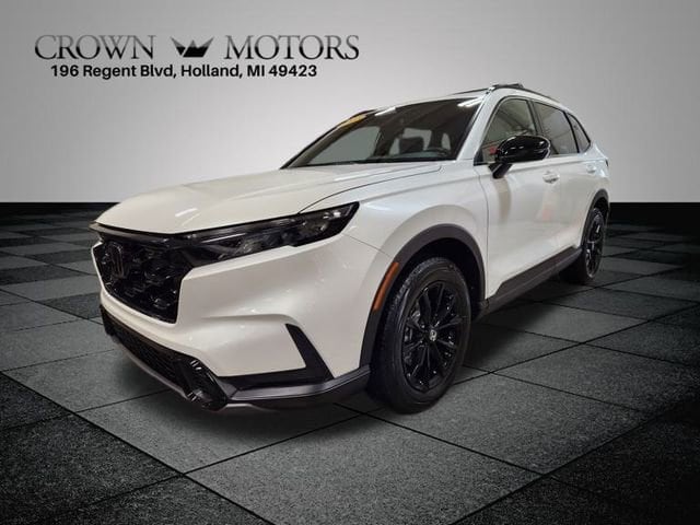 CARFAX One-Owner. Clean CARFAX. Certified. Platinum White Pearl 2023 Honda CR-V Hybrid Sport AWD eCVT 2.0L I4 DOHC 16V **ONE OWNER**, ** LOW MILES**, **HONDA CERTIFIED**, **ACCIDENT FREE**, HondaTrue Certified Certified, 2.0L I4 DOHC 16V, AWD, 4-Wheel Disc Brakes, 4.438 Axle Ratio, 6 Speakers, ABS brakes, Adaptive Cruise Control: Adaptive Cruise Control (ACC) with Low-Speed Follow, Air Conditioning, Alloy wheels, Apple CarPlay/Android Auto, Auto High-beam Headlights, Automatic temperature control, Brake assist, Bumpers: body-color, Cloth Seat Trim, Compass, Delay-off headlights, Driver door bin, Driver vanity mirror, Dual front impact airbags, Dual front side impact airbags, Electronic Stability Control, Exterior Parking Camera Rear, Four wheel independent suspension, Front anti-roll bar, Front Bucket Seats, Front Center Armrest, Front dual zone A/C, Front reading lights, Fully automatic headlights, Heated door mirrors, Heated Front Bucket Seats, Heated front seats, Illuminated entry, Knee airbag, Leather Shift Knob, Leather steering wheel, Low tire pressure warning, Occupant sensing airbag, Outside temperature display, Overhead airbag, Overhead console, Panic alarm, Passenger door bin, Passenger vanity mirror, Power door mirrors, Power driver seat, Power moonroof, Power steering, Power windows, Radio data system, Radio: 240-Watt AM/FM Audio System, Rear anti-roll bar, Rear reading lights, Rear seat center armrest, Rear side impact airbag, Rear window defroster, Rear window wiper, Remote keyless entry, Security system, Speed control, Speed-sensing steering, Speed-Sensitive Wipers, Split folding rear seat, Spoiler, Steering wheel mounted audio controls, Telescoping steering wheel, Tilt steering wheel, Traction control, Trip computer, Turn signal indicator mirrors, Variably intermittent wipers, Wheels: 18" Berlina Black Alloy, 2.0L I4 DOHC 16V, AWD.