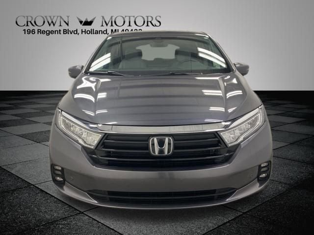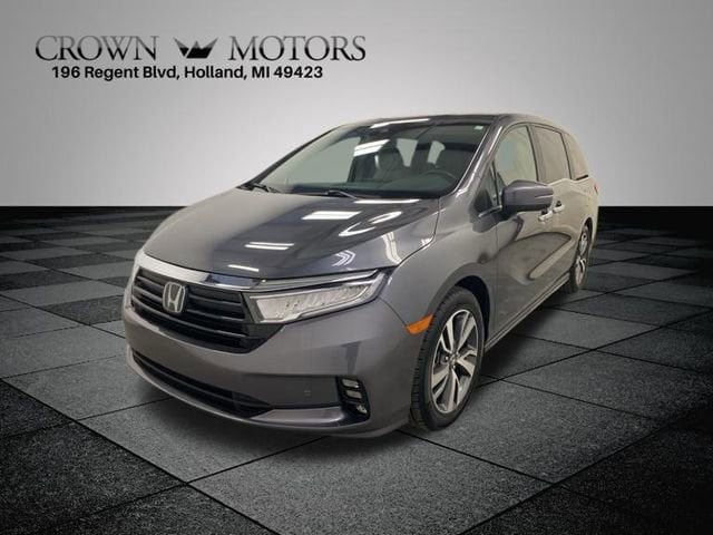 CARFAX One-Owner. Clean CARFAX. Certified. Modern Steel Metallic 2023 Honda Odyssey Touring FWD 10-Speed Automatic 3.5L V6 SOHC i-VTEC 24V **ONE OWNER**, **HONDA CERTIFIED**, **ACCIDENT FREE**, **LOCAL TRADE IN**, HondaTrue Certified Certified, 3.61 Axle Ratio, 3rd row seats: split-bench, 4-Wheel Disc Brakes, 7 Speakers, A/V remote: CabinControl, ABS brakes, Adaptive Cruise Control: Adaptive Cruise Control (ACC) with Low-Speed Follow, Air Conditioning, Alloy wheels, AM/FM radio: SiriusXM, Anti-whiplash front head restraints, Apple CarPlay/Android Auto, Auto High-beam Headlights, Auto-dimming Rear-View mirror, Automatic temperature control, Blind Spot Information (BSI) System warning, Brake assist, Bumpers: body-color, CD player, Compass, Delay-off headlights, Driver door bin, Driver vanity mirror, Driver's Seat Mounted Armrest, Dual front impact airbags, Dual front side impact airbags, DVD-Audio, Electronic Stability Control, Emergency communication system: HondaLink, Exterior Parking Camera Rear, Four wheel independent suspension, Front anti-roll bar, Front Bucket Seats, Front dual zone A/C, Front fog lights, Front reading lights, Fully automatic headlights, Garage door transmitter: HomeLink, Headphones, Heated door mirrors, Heated Front Bucket Seats, Heated front seats, Illuminated entry, Knee airbag, Lane departure: Lane Keeping Assist System (LKAS) active, Leather Seat Trim, Leather steering wheel, Low tire pressure warning, Memory seat, Navigation system: Honda Satellite-Linked Navigation System, Occupant sensing airbag, Outside temperature display, Overhead airbag, Overhead console, Panic alarm, Passenger door bin, Passenger seat mounted armrest, Passenger vanity mirror, Power door mirrors, Power driver seat, Power Liftgate, Power moonroof, Power passenger seat, Power steering, Power windows, Radio data system, Radio: 160-Watt AM/FM/HD/SiriusXM Audio System, Rear air conditioning, Rear anti-roll bar, Rear audio controls, Rear reading lights, Rear seat center armrest, Rear window defroster, Rear window wiper, Reclining 3rd row seat, Remote keyless entry, Security system, Speed control, Speed-sensing steering, Speed-Sensitive Wipers, Split folding rear seat, Spoiler, Steering wheel mounted audio controls, Tachometer, Telescoping steering wheel, Tilt steering wheel, Traction control, Trip computer, Turn signal indicator mirrors, Variably intermittent wipers, Wheels: 19" Machine-Finished Alloy.