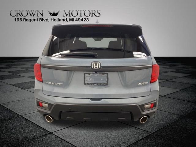 CARFAX One-Owner. Clean CARFAX. Certified. Gray 2023 Honda Passport EX-L AWD 9-Speed Automatic 3.5L V6 24V SOHC i-VTEC **ONE OWNER**, ** LOW MILES**, **HONDA CERTIFIED**, **ACCIDENT FREE**, **LOCAL TRADE IN**, HondaTrue Certified Certified, AWD, 4-Wheel Disc Brakes, 4.334 Axle Ratio, 7 Speakers, A/V remote: CabinControl, ABS brakes, Air Conditioning, Alloy wheels, AM/FM radio: SiriusXM, Apple CarPlay/Android Auto, Auto High-beam Headlights, Auto-dimming Rear-View mirror, Automatic temperature control, Blind Spot Information (BSI) System warning, Brake assist, Bumpers: body-color, Delay-off headlights, Driver door bin, Driver vanity mirror, Driver's Seat Mounted Armrest, Dual front impact airbags, Dual front side impact airbags, Electronic Stability Control, Emergency communication system: HondaLink Assist, Exterior Parking Camera Rear, Four wheel independent suspension, Front anti-roll bar, Front Bucket Seats, Front Center Armrest, Front dual zone A/C, Front reading lights, Fully automatic headlights, Garage door transmitter: HomeLink, Heated door mirrors, Heated Front Bucket Seats, Heated front seats, Illuminated entry, Lane departure: Lane Keeping Assist System (LKAS) active, Leather-Trimmed Seats, Low tire pressure warning, Occupant sensing airbag, Outside temperature display, Overhead airbag, Overhead console, Panic alarm, Passenger door bin, Passenger seat mounted armrest, Passenger vanity mirror, Power door mirrors, Power driver seat, Power Liftgate, Power moonroof, Power passenger seat, Power steering, Power windows, Radio data system, Radio: 215-Watt Audio System w/7 Speakers, Rear air conditioning, Rear anti-roll bar, Rear reading lights, Rear seat center armrest, Rear window defroster, Rear window wiper, Remote keyless entry, Security system, Speed control, Speed-sensing steering, Split folding rear seat, Spoiler, Steering wheel mounted audio controls, Tachometer, Telescoping steering wheel, Tilt steering wheel, Traction control, Trip computer, Turn signal indicator mirrors, Variably intermittent wipers, Wheels: 20" Pewter Gray Alloy, AWD.