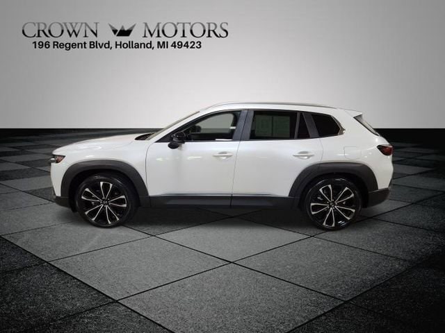 CARFAX One-Owner. Certified. Pearl 2024 Mazda CX-50 2.5 Turbo AWD 6-Speed Automatic 2.5L I4 Turbocharged DOHC 16V LEV3-ULEV70 227hp **ONE OWNER**, ** LOW MILES**, **MAZDA CERTIFIED**, Mazda Certified Pre-Owned Certified, 20" x 8J Aluminum Alloy Wheels, 3.841 Axle Ratio, 4-Wheel Disc Brakes, 8 Speakers, ABS brakes, Air Conditioning, Alloy wheels, AM/FM radio, AppLink/Apple CarPlay and Android Auto, Auto High-beam Headlights, Auto-dimming Rear-View mirror, Automatic temperature control, Brake assist, Bumpers: body-color, Compass, Delay-off headlights, Driver door bin, Driver vanity mirror, Dual front impact airbags, Dual front side impact airbags, Electronic Stability Control, Emergency communication system: MAZDA CONNECT, Exterior Parking Camera Rear, Front anti-roll bar, Front Bucket Seats, Front Center Armrest, Front dual zone A/C, Front reading lights, Front wheel independent suspension, Fully automatic headlights, Garage door transmitter: HomeLink, Heated door mirrors, Heated Front Bucket Seats, Heated front seats, Illuminated entry, Knee airbag, Leather Seat Trim, Leather Shift Knob, Leather steering wheel, Low tire pressure warning, Memory seat, Occupant sensing airbag, Outside temperature display, Overhead airbag, Overhead console, Panic alarm, Passenger door bin, Passenger vanity mirror, Power door mirrors, Power driver seat, Power Liftgate, Power moonroof, Power passenger seat, Power steering, Power windows, Premium Carpet Floor Mats, Radio data system, Radio: AM/FM/HD Audio System, Rain sensing wipers, Rear seat center armrest, Rear window defroster, Rear window wiper, Remote keyless entry, Retractable Cargo Cover, Speed control, Speed-sensing steering, Split folding rear seat, Spoiler, Steering wheel mounted audio controls, Tachometer, Telescoping steering wheel, Tilt steering wheel, Traction control, Trailer Hitch w/7-Pin Harness, Trip computer, Turn signal indicator mirrors, Variably intermittent wipers, Wind Chill Pearl Paint Charge.