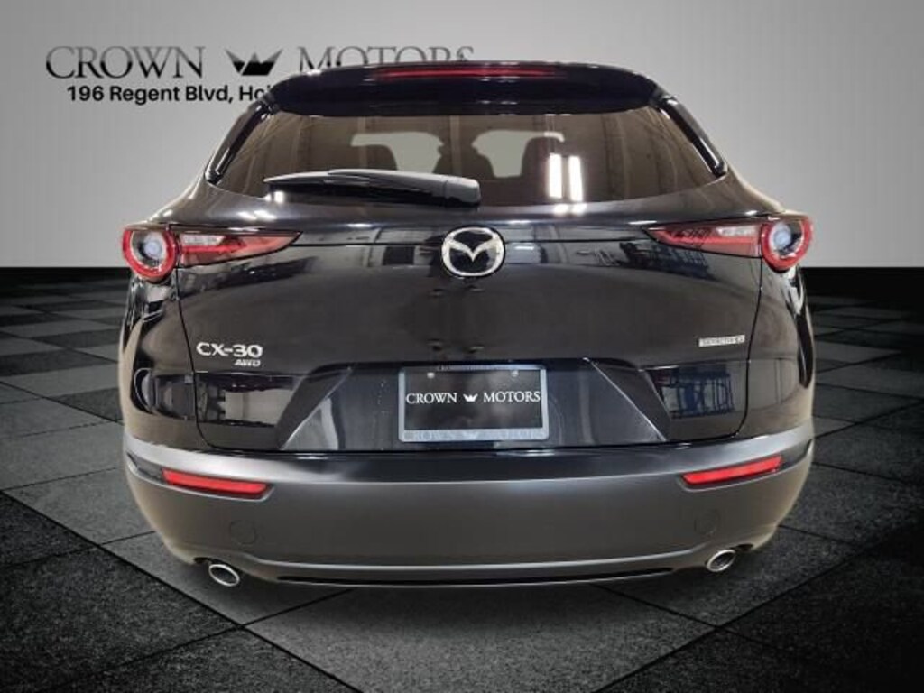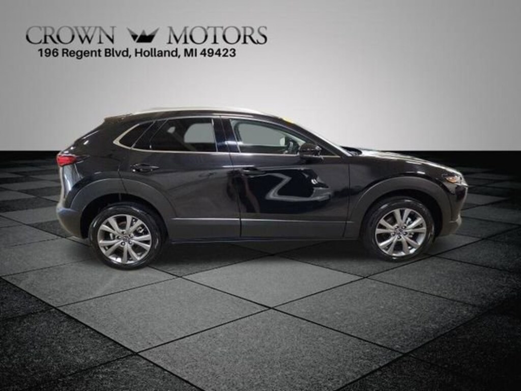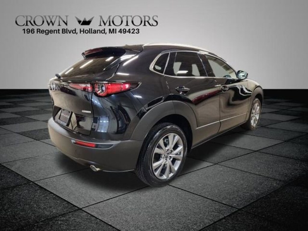 Jet Black Mica 2025 Mazda CX-30 2.5 S Premium Package AWD 6-Speed Automatic SKYACTIV® 2.5L 4-Cylinder DOHC 16V **ONE OWNER**, ** LOW MILES**, **MAZDA CERTIFIED**, **ACCIDENT FREE**, AWD, 12 Speakers, 4-Wheel Disc Brakes, ABS brakes, Air Conditioning, Alloy wheels, AM/FM radio: SiriusXM, AppLink/Apple CarPlay and Android Auto, Auto High-beam Headlights, Automatic temperature control, Brake assist, Bumpers: body-color, Compass, Delay-off headlights, Driver door bin, Driver vanity mirror, Dual front impact airbags, Dual front side impact airbags, Electronic Stability Control, Emergency communication system: Mazda Connected Services (3-year trial subscription included), Exterior Parking Camera Rear, Front anti-roll bar, Front Bucket Seats, Front Center Armrest, Front dual zone A/C, Front reading lights, Front wheel independent suspension, Fully automatic headlights, Heads-Up Display, Heated door mirrors, Heated Front Bucket Seats, Heated front seats, Illuminated entry, Knee airbag, Leather Seat Trim, Leather Shift Knob, Leather steering wheel, Low tire pressure warning, MAZDA CONNECT Infotainment System, Memory seat, Navigation system: MAZDA CONNECT, Occupant sensing airbag, Outside temperature display, Overhead airbag, Overhead console, Panic alarm, Passenger door bin, Passenger vanity mirror, Power door mirrors, Power driver seat, Power Liftgate, Power moonroof, Power steering, Power windows, Radio data system, Radio: AM/FM/HD Audio w/Mazda Online Navigation, Rain sensing wipers, Rear seat center armrest, Rear side impact airbag, Rear window defroster, Rear window wiper, Remote keyless entry, Speed control, Speed-sensing steering, Split folding rear seat, Spoiler, Steering wheel mounted audio controls, Tachometer, Telescoping steering wheel, Tilt steering wheel, Traction control, Trip computer, Turn signal indicator mirrors, Variably intermittent wipers, Wheel Locks, Wheels: 18" x 7J Aluminum Alloy, AWD.