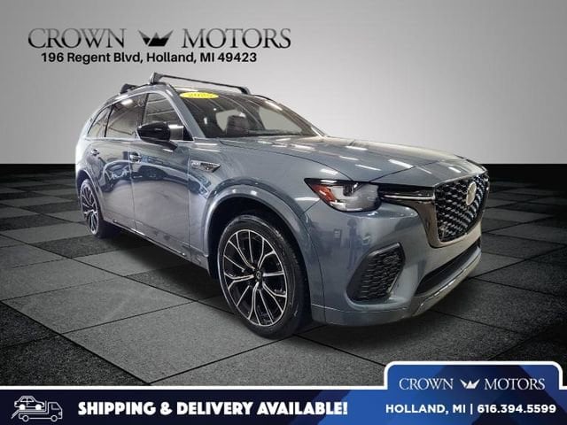 Certified. Polymetal Gray Metallic 2025 Mazda CX-70 3.3 Turbo S Premium AWD 8-Speed Automatic I6 Turbo **ONE OWNER**, ** LOW MILES**, **MAZDA CERTIFIED**, **ACCIDENT FREE**, Mazda Certified Pre-Owned Certified, 12 Speakers, 4-Wheel Disc Brakes, ABS brakes, Air Conditioning, Alloy wheels, AM/FM radio: SiriusXM, Auto High-beam Headlights, Auto-dimming door mirrors, Auto-dimming Rear-View mirror, Automatic temperature control, Brake assist, Bumpers: body-color, Cargo Blocks, Carpeted Cargo Mat, Compass, Delay-off headlights, Driver door bin, Driver vanity mirror, Dual front impact airbags, Dual front side impact airbags, E911 Automatic Emergency Notification, Electronic Stability Control, Emergency communication system: MAZDA CONNECT, Four wheel independent suspension, Front anti-roll bar, Front Bucket Seats, Front Center Armrest w/Storage, Front dual zone A/C, Front reading lights, Fully automatic headlights, Garage door transmitter: HomeLink, Heads-Up Display, Heated door mirrors, Heated front seats, Heated rear seats, Heated steering wheel, Heated/Ventilated Front Bucket Seats, Illuminated entry, Infotainment System Voice Command, Knee airbag, Leather Shift Knob, Leather steering wheel, Low tire pressure warning, Mazda Connected Services, Mazda Online Navigation, Memory seat, Nappa Leather Seat Trim, Navigation system: MAZDA CONNECT, Occupant sensing airbag, Outside temperature display, Overhead airbag, Overhead console, Pandora Internet Radio Integration, Panic alarm, Passenger door bin, Passenger vanity mirror, Polymetal Gray Metallic Paint Charge, Power door mirrors, Power driver seat, Power Liftgate, Power moonroof, Power passenger seat, Power steering, Power windows, Premium Carpet Floor Mats, Radio Broadcast Data System Program Information, Radio data system, Radio: AM/FM w/Bose Premium Audio Sound System, Rain sensing wipers, Rear air conditioning, Rear anti-roll bar, Rear reading lights, Rear seat center armrest, Rear window defroster, Rear window wiper, Remote keyless entry, Security system, SMS Text Msg Audio Delivery & Reply, Speed control, Speed-sensing steering, Split folding rear seat, Spoiler, Steering wheel memory, Steering wheel mounted audio controls, Tachometer, Telescoping steering wheel, Tilt steering wheel, Traction control, Trip computer, Turn signal indicator mirrors, Variably intermittent wipers, Ventilated front seats, Wheels: 21" x 9.5J Aluminum Alloy.
