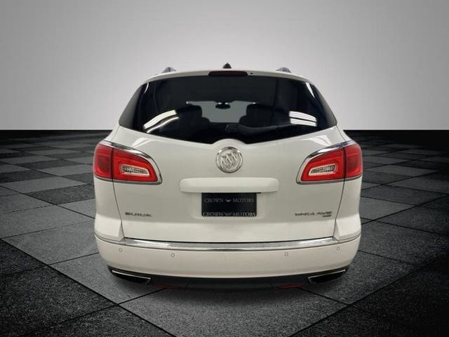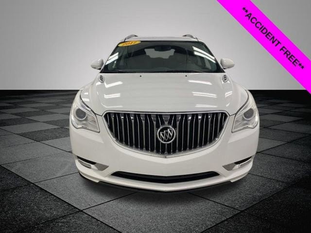 Clean CARFAX. Summit White 2017 Buick Enclave Leather Group AWD 6-Speed Automatic Electronic with Overdrive 3.6L V6 SIDI VVT **ACCIDENT FREE**, **LOCAL TRADE IN**, AWD, 3.16 Axle Ratio, 3rd row seats: split-bench, 4-Wheel Disc Brakes, 6 Speakers, 7-Passenger Seating, ABS brakes, Air Conditioning, Alloy wheels, AM/FM radio: SiriusXM, Auto-dimming Rear-View mirror, Automatic temperature control, Brake assist, Bumpers: body-color, CD player, Compass, Delay-off headlights, Driver door bin, Driver vanity mirror, Dual front impact airbags, Dual front side impact airbags, Electronic Stability Control, Emergency communication system: OnStar Guidance, Exterior Parking Camera Rear, Four wheel independent suspension, Front anti-roll bar, Front Bucket Seats, Front Center Armrest w/Storage, Front dual zone A/C, Front License Plate Mounting Bracket, Front reading lights, Fully automatic headlights, Garage door transmitter, Heated door mirrors, Heated front seats, Heated steering wheel, High intensity discharge headlights: Bi-Xenon, Illuminated entry, Leather steering wheel, Low tire pressure warning, Memory seat, Occupant sensing airbag, Outside temperature display, Overhead airbag, Panic alarm, Passenger door bin, Passenger vanity mirror, Perforated Leather-Appointed Seat Trim, Power door mirrors, Power driver seat, Power Liftgate, Power passenger seat, Power steering, Power windows, Preferred Equipment Group 1SL, Radio data system, Radio: Color Touch AM/FM/CD w/IntelliLink, Rear air conditioning, Rear anti-roll bar, Rear Parking Sensors, Rear reading lights, Rear window defroster, Rear window wiper, Remote keyless entry, Roof rack: rails only, Security system, SiriusXM Satellite Radio, Speed control, Speed-sensing steering, Spoiler, Steering wheel mounted audio controls, Tachometer, Telescoping steering wheel, Tilt steering wheel, Traction control, Trip computer, Turn signal indicator mirrors, Variably intermittent wipers, Voltmeter, Wheels: 19" 10-Spoke Aluminum, Wheels: 19" Chrome-Clad Cast Aluminum, AWD.