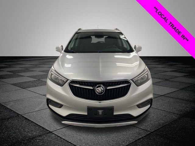 Clean CARFAX. Quicksilver Metallic 2017 Buick Encore Preferred FWD 6-Speed Automatic Electronic with Overdrive ECOTEC 1.4L I4 SMPI DOHC Turbocharged VVT **LOCAL TRADE IN**, 2-Way Manual Front Passenger Seat Adjuster, 3.53 Final Drive Axle Ratio, 4-Wheel Disc Brakes, 6 Speakers, 6-Way Power Driver Seat Adjuster, ABS brakes, Air Conditioning, Alloy wheels, AM/FM radio: SiriusXM, Apple CarPlay/Android Auto, Black Carbon Metallic Lower Exterior Accent Color, Brake assist, Bumpers: body-color, Cloth w/Leatherette Seat Trim, Compass, Delay-off headlights, Driver door bin, Driver vanity mirror, Driver's Seat Mounted Armrest, Dual front impact airbags, Dual front side impact airbags, Electronic Stability Control, Emergency communication system: OnStar Guidance, Exterior Parking Camera Rear, Front anti-roll bar, Front Bucket Seats, Front License Plate Bracket, Front reading lights, Front wheel independent suspension, Fully automatic headlights, Heated door mirrors, Illuminated entry, Knee airbag, Low tire pressure warning, Occupant sensing airbag, Outside temperature display, Overhead airbag, Panic alarm, Passenger door bin, Passenger vanity mirror, Power door mirrors, Power driver seat, Power steering, Power windows, Preferred Equipment Group 1SB, Premium audio system: IntelliLink, Radio data system, Radio: Buick IntelliLink AM/FM Stereo, Rear seat center armrest, Rear side impact airbag, Rear window defroster, Rear window wiper, Remote keyless entry, Ride & Handling Suspension, Roof rack: rails only, Security system, SiriusXM Satellite Radio, Speed control, Speed-sensing steering, Split folding rear seat, Spoiler, Steering wheel mounted audio controls, Tachometer, Telescoping steering wheel, Tilt steering wheel, Traction control, Trip computer, Turn signal indicator mirrors, Variably intermittent wipers, Wheels: 18" Aluminum (DISC), Wheels: 18" Machined-Face Alloy.