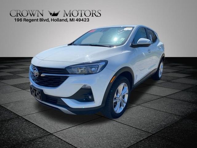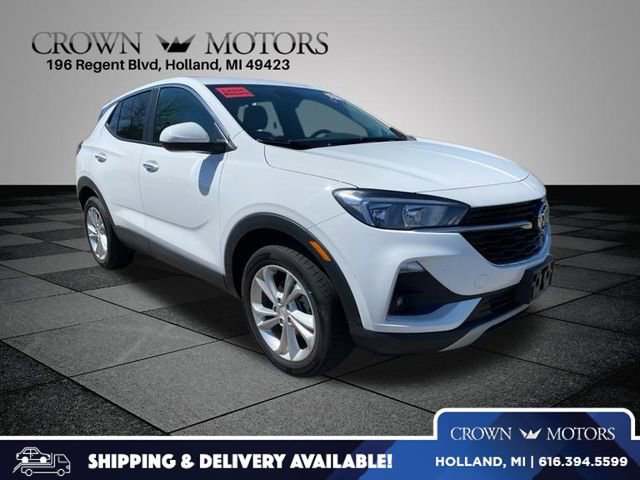 Summit White 2023 Buick Encore GX Preferred AWD 9-Speed Automatic ECOTEC 1.3L Turbo 2 USB Ports w/Auxiliary Input Jack, 2-Way Power Driver Lumbar Control, 3.17 Final Drive Axle Ratio, 4-Way Manual Passenger Seat Adjuster, 4-Wheel Disc Brakes, 6 Speakers, 6-Way Manual Driver Seat Adjuster, 8-Way Power Driver Seat Adjuster, ABS brakes, Air Conditioning, All-Weather Floor Mats, Alloy wheels, AM/FM radio: SiriusXM, Auto High-beam Headlights, Automatic temperature control, Brake assist, Bumpers: body-color, Cloth w/Leatherette Seat Trim, Cold Weather Comfort Package, Compass, Delay-off headlights, Driver door bin, Driver vanity mirror, Dual front impact airbags, Dual front side impact airbags, Electronic Stability Control, Emergency communication system: OnStar and Buick connected services capable, Enhanced Performance 6-Speaker System, Front anti-roll bar, Front Bucket Seats, Front Center Armrest, Front fog lights, Front License Plate Bracket, Front reading lights, Front wheel independent suspension, Fully automatic headlights, Heated door mirrors, Heated Driver & Front Passenger Seats, Illuminated entry, Knee airbag, Low tire pressure warning, Occupant sensing airbag, Outside temperature display, Overhead airbag, Overhead console, Panic alarm, Passenger door bin, Passenger vanity mirror, Power door mirrors, Power steering, Power windows, Preferred Equipment Group 1SB, Radio data system, Radio: 8" Diagonal Buick Infotainment System, Rear reading lights, Rear side impact airbag, Rear window defroster, Rear window wiper, Remote keyless entry, Remote Vehicle Starter System, Ride & Handling Suspension, Security system, SiriusXM Radio, Speed control, Speed-sensing steering, Split folding rear seat, Spoiler, Steering wheel mounted audio controls, Tachometer, Telescoping steering wheel, Tilt steering wheel, Traction control, Trip computer, Variably intermittent wipers, Wheels: 18" Bright Silver Painted Aluminum, Wireless Apple CarPlay/Wireless Android Auto.