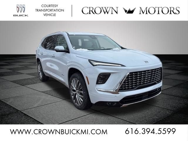 Iridescent White Tricoat 2026 Buick Enclave Avenir AWD 8-Speed Automatic 2.5L DOHC Enclave Avenir, Iridescent White Tricoat, Gry Seats Slate Blu Leather, 1st and 2nd Row All-Weather Floor Liners, 3rd Row All-Weather Floor Liner, 3rd row seats: split-bench, Apple CarPlay/Android Auto, Bose Performance 16-Speaker Audio System with Subwoofer, Compass, Driver 4-Way Power Lumbar Seat Adjuster, Driver 8-Way Power Seat Adjuster, Driver Attention Assist, Driver Massage Control with 4-Way Power Lumbar, Enhanced Automatic Parking Assist, Floor Liner Package, Front Bucket Seats, Front Passenger 4-Way Power Lumbar Seat Adjuster, Front Passenger 6-Way Power Seat Adjuster, Front Passenger Massage Control with 4-Way Power Lumbar, Garage door transmitter, Heads-Up Display, Heated Driver and Front Passenger Seats, Heated front seats, Heated rear seats, Heated steering wheel, Integrated Cargo Liner, Leather steering wheel, Memory seat, Navigation System, Power Liftgate, Power moonroof, Power passenger seat, Quilted and Perforated Leather-Appointed Seat Trim, Super Cruise, Super Cruise Package, Ventilated Driver and Front Passenger Seats, Ventilated front seats, Ventilated rear seats, Wireless Apple CarPlay, Wireless Google Android Auto, 16 Speakers, 4-Wheel Disc Brakes, ABS brakes, Adaptive suspension, Air Conditioning, Alloy wheels, AM/FM radio: SiriusXM with 360L, Auto High-beam Headlights, Auto tilt-away steering wheel, Auto-dimming door mirrors, Auto-dimming Rear-View mirror, Automatic temperature control, Brake assist, Bumpers: body-color, Delay-off headlights, Driver door bin, Driver vanity mirror, Dual front impact airbags, Dual front side impact airbags, Electronic Stability Control, Emergency communication system: OnStar and Buick connected services capable, Four wheel independent suspension, Front anti-roll bar, Front Center Armrest, Front dual zone A/C, Front reading lights, Fully automatic headlights, Heated door mirrors, Illuminated entry, Low tire pressure warning, Memory Settings, Occupant sensing airbag, Outside temperature display, Overhead airbag, Overhead console, Panic alarm, Passenger door bin, Passenger vanity mirror, Power door mirrors, Power driver seat, Power steering, Power windows, Premium audio system: Buick Infotainment System, Radio data system, Radio: Infotainment Center, Rain sensing wipers, Rear air conditioning, Rear anti-roll bar, Rear reading lights, Rear side impact airbag, Rear window defroster, Rear window wiper, Remote keyless entry, Security system, SiriusXM with 360L Trial Subscription, Speed control, Speed-sensing steering, Spoiler, Steering wheel memory, Steering wheel mounted audio controls, Tachometer, Telescoping steering wheel, Tilt steering wheel, Traction control, Trip computer, Turn signal indicator mirrors, Variably intermittent wipers, Voltmeter, Wheels: 22" Alloy with Avenir Pearl Nickel Finish, **Bluetooth**, **Leather**, **Rear Back Up Camera**, Enclave Avenir, Iridescent White Tricoat, Gry Seats Slate Blu Leather, 1st and 2nd Row All-Weather Floor Liners, 3rd Row All-Weather Floor Liner, 3rd row seats: split-bench, Apple CarPlay/Android Auto, Bose Performance 16-Speaker Audio System with Subwoofer, Compass, Driver 4-Way Power Lumbar Seat Adjuster, Driver 8-Way Power Seat Adjuster, Driver Attention Assist, Driver Massage Control with 4-Way Power Lumbar, Enhanced Automatic Parking Assist, Floor Liner Package, Front Bucket Seats, Front Passenger 4-Way Power Lumbar Seat Adjuster, Front Passenger 6-Way Power Seat Adjuster, Front Passenger Massage Control with 4-Way Power Lumbar, Garage door transmitter, Heads-Up Display, Heated Driver and Front Passenger Seats, Heated front seats, Heated rear seats, Heated steering wheel, Integrated Cargo Liner, Leather steering wheel, Memory seat, Navigation System, Power Liftgate, Power moonroof, Power passenger seat, Quilted and Perforated Leather-Appointed Seat Trim, Super Cruise, Super Cruise Package, Ventilated Driver and Front Passenger Seats, Ventilate