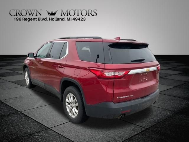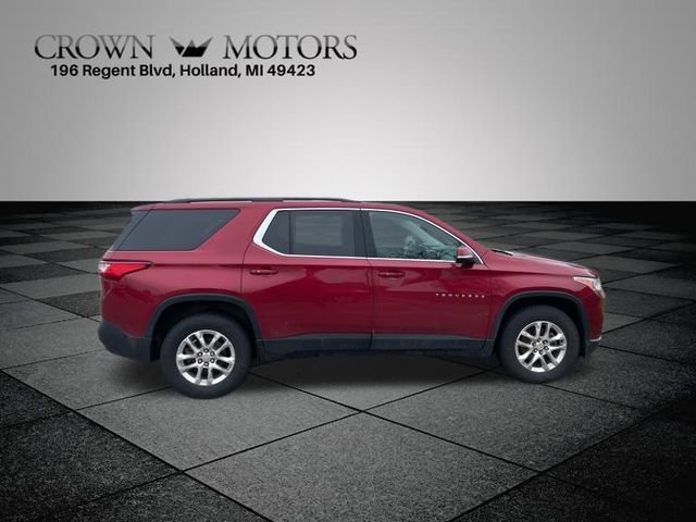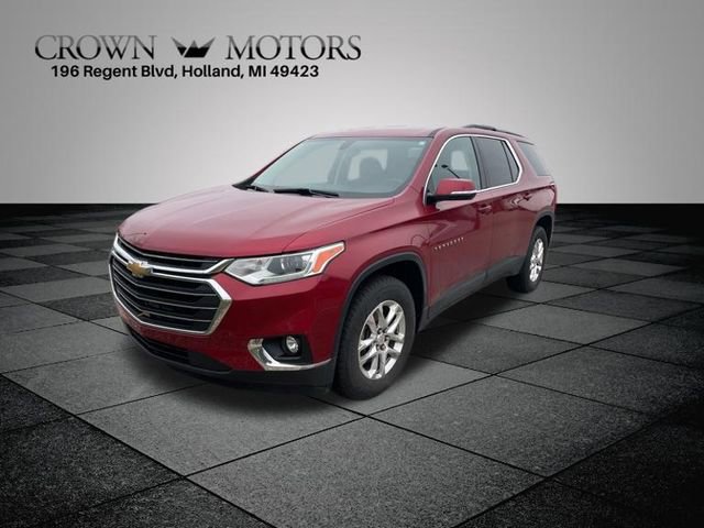 CARFAX One-Owner. Clean CARFAX. Cajun Red Tintcoat 2019 Chevrolet Traverse LT Cloth w/1LT AWD 9-Speed Automatic 3.6L V6 SIDI VVT **ONE OWNER**, **ACCIDENT FREE**, **LOCAL TRADE IN**, AWD, 3.49 Axle Ratio, 3rd row seats: split-bench, 4-Wheel Disc Brakes, 6 Speakers, 7-Passenger Seating (2-2-3 Seating Configuration), ABS brakes, Air Conditioning, Alloy wheels, AM/FM radio: SiriusXM, Apple CarPlay/Android Auto, Automatic temperature control, Brake assist, Bumpers: body-color, Compass, Delay-off headlights, Driver door bin, Driver vanity mirror, Dual front impact airbags, Dual front side impact airbags, Electronic Stability Control, Emergency communication system, Four wheel independent suspension, Front anti-roll bar, Front Bucket Seats, Front Center Armrest, Front dual zone A/C, Front fog lights, Front reading lights, Fully automatic headlights, Garage door transmitter, Heated door mirrors, Heated front seats, High-Intensity Discharge Headlights, Illuminated entry, Low tire pressure warning, Occupant sensing airbag, Outside temperature display, Overhead airbag, Overhead console, Panic alarm, Passenger door bin, Passenger vanity mirror, Power door mirrors, Power driver seat, Power Liftgate, Power steering, Power windows, Preferred Equipment Group 1LT, Premium Cloth Seat Trim, Radio data system, Radio: Chevrolet Infotainment AM/FM w/8" Screen, Rear air conditioning, Rear anti-roll bar, Rear reading lights, Rear window defroster, Rear window wiper, Remote keyless entry, Roof rack: rails only, Security system, SiriusXM Radio, Speed control, Speed-sensing steering, Spoiler, Steering wheel mounted audio controls, Tachometer, Telescoping steering wheel, Tilt steering wheel, Traction control, Trip computer, Turn signal indicator mirrors, Variably intermittent wipers, Voltmeter, Wheel Locks, Wheels: 18" Bright Silver Painted Aluminum, AWD.