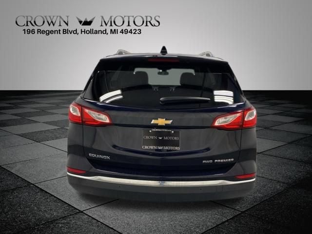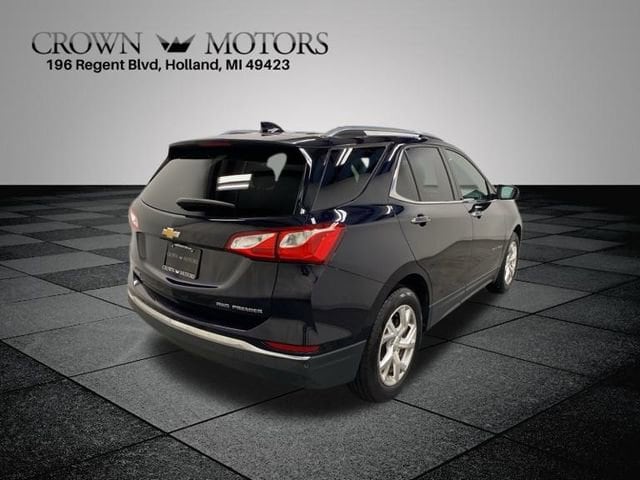 Clean CARFAX. Midnight Blue Metallic 2020 Chevrolet Equinox Premier AWD 6-Speed Automatic Electronic with Overdrive 1.5L DOHC AWD, 18" Aluminum Wheels, 2 Rear USB Charging-Only Ports, 2 USB Data Ports, 2 USB Data Ports w/SD Card Reader, 2-Way Power Driver Lumbar Control Seat Adjuster, 3.87 Final Drive Axle Ratio, 4-Wheel Disc Brakes, 6 Speaker Audio System Feature, 6 Speakers, 8-Way Power Driver Seat Adjuster, 8-Way Power Front Passenger Seat Adjuster, ABS brakes, Adaptive Cruise Control - Camera, Air Conditioning, Alloy wheels, AM/FM radio: SiriusXM, Apple CarPlay/Android Auto, Auto High-beam Headlights, Auto-dimming door mirrors, Auto-dimming Rear-View mirror, Automatic temperature control, Bluetooth® For Phone, Brake assist, Bumpers: body-color, Compass, Confidence & Convenience II Package, Delay-off headlights, Driver Confidence III Package, Driver Convenience II Package, Driver door bin, Driver vanity mirror, Dual front impact airbags, Dual front side impact airbags, Electronic Stability Control, Emergency communication system: OnStar and Chevrolet connected services capable, Four wheel independent suspension, Front anti-roll bar, Front Bucket Seats, Front Center Armrest, Front dual zone A/C, Front fog lights, Front Passenger 4-Way Manual Seat Adjuster, Front reading lights, Fully automatic headlights, Garage door transmitter, HD Surround Vision, Heated door mirrors, Heated Driver & Front Passenger Seats, Heated front seats, Heated Rear Seats, Heated Steering Wheel, Illuminated entry, Low tire pressure warning, Memory seat, Occupant sensing airbag, Outside temperature display, Overhead airbag, Overhead console, Panic alarm, Passenger door bin, Passenger vanity mirror, Perforated Leather-Appointed Seat Trim, Power door mirrors, Power driver seat, Power Liftgate, Power steering, Power Sunroof, Power windows, Preferred Equipment Group 1LZ, Premium audio system: Chevrolet Infotainment 3 Plus, Radio data system, Radio: Chevrolet Infotainment 3 Plus System, Rear anti-roll bar, Rear reading lights, Rear seat center armrest, Rear window defroster, Rear window wiper, Remote keyless entry, Roof rack: rails only, Safety Alert Seat, Security system, Set of 4 Wheel Locks (LPO), SiriusXM Radio, Speed control, Speed-sensing steering, Split folding rear seat, Spoiler, Steering wheel mounted audio controls, Tachometer, Telescoping steering wheel, Tilt steering wheel, Traction control, Trip computer, Turn signal indicator mirrors, Variably intermittent wipers, Ventilated Driver Seat, Ventilated Front Passenger Seat, AWD.