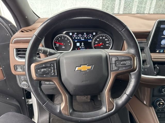 4WD, Jet Black/Mocha Leather, 10 Speakers, 12-Way Power Driver & Passenger Seat Adjusters, 15" Diagonal Multi-Color Head-Up Display, 1st & 2nd Row Color-Keyed Carpeted Floor Mats, 2 USB Data Ports, 2-Speed Active Electronic AutoTrac Transfer Case, 3.23 Rear Axle Ratio, 3rd Row 60/40 Power-Folding Split-Bench Seat, 3rd row seats: split-bench, 4-Wheel Disc Brakes, ABS brakes, Adaptive Cruise Control, Adaptive suspension, Advanced Trailering Package, Advanced Trailering System, Air Conditioning, Air Ride Adaptive Suspension, Alloy wheels, AM/FM radio: SiriusXM with 360L, Apple CarPlay/Android Auto, Auto High-beam Headlights, Auto-dimming door mirrors, Auto-dimming Rear-View mirror, Auto-leveling suspension, Automatic Heated Steering Wheel, Automatic temperature control, Bose 10-Speaker Centerpoint Surround Audio Sys Ft, Brake assist, Bright Front & Rear Door Sill Plates, Bumpers: body-color, Chrome Door Handles w/Body-Color Strip, Color-Keyed Carpeting Floor Covering, Compass, Delay-off headlights, Driver & Front Outboard Passenger Airbags, Driver door bin, Driver vanity mirror, Dual Exhaust System, Dual front impact airbags, Dual front side impact airbags, Dual-Pane Power Panoramic Sunroof, Electronic Stability Control, Emergency communication system: OnStar and Chevrolet connected services capable, Enhanced Automatic Emergency Braking, Enhanced Driver Information Center, Extra Capacity Cooling System, Floor Console, Floor Console w/Storage Area, Four wheel independent suspension, Front & Rear Park Assist, Front anti-roll bar, Front Bucket Seats, Front Center Armrest, Front dual zone A/C, Front High-Back Reclining Bucket Seats, Front reading lights, Fully automatic headlights, Garage door transmitter, Hands-Free Rear Power Programmable Liftgate, HD Radio, HD Surround Vision, Heads-Up Display, Heated & Ventilated Driver & Front Passenger Seats, Heated 2nd Row Outboard Seats, Heated door mirrors, Heated Driver & Front Passenger Seats, Heated front seats, Heated rear seats, Heated steering wheel, High Country Deluxe, Hill Descent Control, Hitch Guidance w/Hitch View, Illuminated entry, Infotainment Display, Inside Rearview Auto-Dimming Rear Camera Mirror, Integrated Trailer Brake Controller, Lane Change Alert w/Side Blind Zone Alert, Lane Keep Assist w/Lane Departure Warning, Leather steering wheel, Leather-Wrapped Steering Wheel, LED Daytime Running Lamps, Low tire pressure warning, Magnetic Ride Control Suspension, Max Trailering Package, Memory seat, Memory Settings, Navigation System, Occupant sensing airbag, Outside Heated Power-Adjustable Mirrors, Outside temperature display, Overhead airbag, Overhead console, Panic alarm, Passenger door bin, Passenger vanity mirror, Perforated Leather Seat Trim, Power door mirrors, Power driver seat, Power Liftgate, Power passenger seat, Power Release 2nd Row Bucket Seats, Power steering, Power Tilt & Telescopic Steering Column, Power windows, Power-Retractable Assist Steps, Preferred Equipment Group 3LZ, Premium audio system: Chevrolet Infotainment 3, Radio: Chevrolet Infotainment 3 Premium System, Rain sensing wipers, Rear air conditioning, Rear anti-roll bar, Rear Camera Mirror Washer, Rear Cross Traffic Alert, Rear Pedestrian Alert, Rear reading lights, Rear window defroster, Rear window wiper, Remote keyless entry, Remote Start, Roof rack: rails only, Safety Alert Seat, Security system, Set of 4 Wheel Locks (LPO), SiriusXM NavTraffic, SiriusXM Radio w/360L, Speed control, Speed-sensing steering, Split folding rear seat, Spoiler, Steering wheel memory, Steering wheel mounted audio controls, Tachometer, Telescoping steering wheel, Tilt steering wheel, Traction control, Trailer Side Blind Zone Alert, Trip computer, Turn signal indicator mirrors, Universal Home Remote, Variably intermittent wipers, Ventilated front seats, Voltmeter, Wheels: 22" x 9" Sterling Silver Premium Painted, 4WD, Jet Black/Mocha Leather.