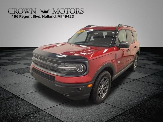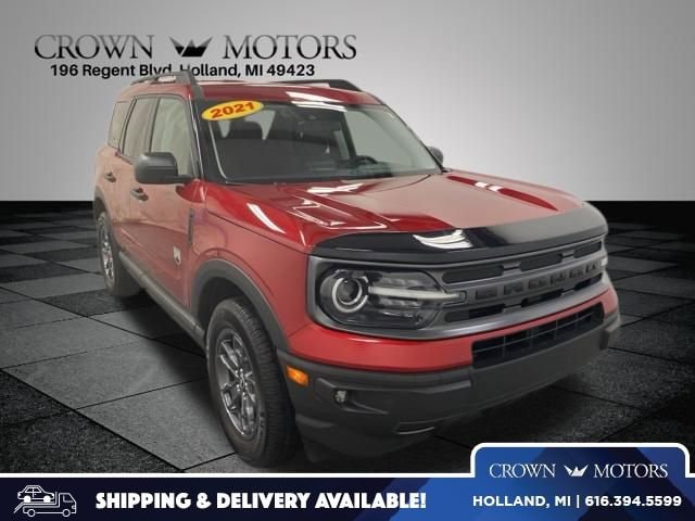 Red 2021 Ford Bronco Sport Big Bend 4WD 8-Speed Automatic 1.5L EcoBoost **LEATHER**, **ACCIDENT FREE**, **LOCAL TRADE IN**, Bronco Sport Big Bend, 3.80 Axle Ratio, 4-Wheel Disc Brakes, 6 Speakers, ABS brakes, Air Conditioning, Alloy wheels, AM/FM radio: SiriusXM, AM/FM Stereo, Auto High-beam Headlights, Automatic temperature control, Brake assist, Compass, Delay-off headlights, Driver door bin, Driver vanity mirror, Dual front impact airbags, Dual front side impact airbags, Electronic Stability Control, Emergency communication system: SYNC 3 911 Assist, Equipment Group 200A, Exterior Parking Camera Rear, Four wheel independent suspension, Front anti-roll bar, Front Bucket Seats, Front Center Armrest, Front fog lights, Front reading lights, Fully automatic headlights, Heated door mirrors, Illuminated entry, Knee airbag, Low tire pressure warning, Occupant sensing airbag, Outside temperature display, Overhead airbag, Overhead console, Panic alarm, Passenger door bin, Passenger vanity mirror, Power door mirrors, Power steering, Power windows, Radio data system, Rear anti-roll bar, Rear reading lights, Rear seat center armrest, Rear window defroster, Rear window wiper, Remote keyless entry, Roof rack: rails only, Security system, SiriusXM Radio, Speed control, Speed-sensing steering, Speed-Sensitive Wipers, Split folding rear seat, Steering wheel mounted audio controls, SYNC 3 Communications & Entertainment System, SYNC 3/Apple CarPlay/Android Auto, Tachometer, Telescoping steering wheel, Tilt steering wheel, Traction control, Trip computer, Unique Cloth Front Bucket Seats, Variably intermittent wipers, Wheels: 17" Carbonized Gray-Painted Aluminum, Bronco Sport Big Bend.