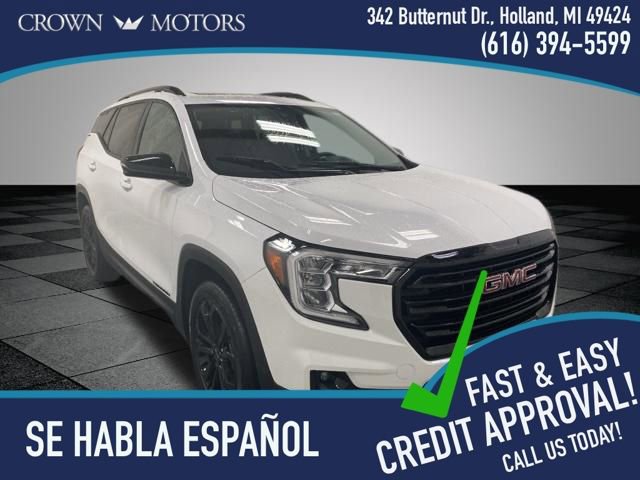 CARFAX One-Owner. Clean CARFAX. Summit White 2022 GMC Terrain SLT AWD 9-Speed Automatic 1.5L DOHC **ONE OWNER**, ** LOW MILES**, **ACCIDENT FREE**, AWD, 2 USB Data Ports, 2 USB Data Ports w/SD Card Reader, 3 Years of OnStar & Connected Services Plan, 3.47 Axle Ratio, 4-Wheel Disc Brakes, 6 Speakers, 6-Speaker Audio System Feature, 6-Way Power Front Passenger Seat, 8-Way Power Driver Seat Adjuster, ABS brakes, Air Conditioning, Alloy wheels, AM/FM radio: SiriusXM, Auto High-beam Headlights, Auto-dimming Rear-View mirror, Automatic temperature control, Black GMC Center Caps w/Red GMC Lettering, Black Mirror Caps, Bluetooth® For Phone, Brake assist, Bumpers: body-color, Compass, Darkened Front Grille, Delay-off headlights, Driver & Front Passenger Heated Seats, Driver door bin, Driver vanity mirror, Dual front impact airbags, Dual front side impact airbags, Electronic Stability Control, Elevation Edition, Emergency communication system: OnStar Guidance, Four wheel independent suspension, Front anti-roll bar, Front Bucket Seats, Front Center Armrest, Front dual zone A/C, Front fog lights, Front Passenger 2-Way Power Lumbar, Front reading lights, Fully automatic headlights, Garage door transmitter, Heated door mirrors, Heated front seats, Heated steering wheel, Illuminated entry, Lane Departure Warning System, Low tire pressure warning, Memory seat, Occupant sensing airbag, Outside temperature display, Overhead airbag, Overhead console, Panic alarm, Passenger door bin, Passenger vanity mirror, Perforated Leather-Appointed Seat Trim, Power door mirrors, Power Driver Lumbar Control, Power driver seat, Power Liftgate, Power passenger seat, Power steering, Power windows, Preferred Equipment Group 4SA, Radio data system, Radio: GMC Infotainment Audio System w/8" Display, Rear anti-roll bar, Rear seat center armrest, Rear window defroster, Rear window wiper, Remote keyless entry, Roof rack: rails only, Roof-Mounted Luggage Rack Side Rails, Security system, SiriusXM Radio, Skyscape Power Sunroof w/Power Sunscreen, Speed control, Speed-sensing steering, Split folding rear seat, Spoiler, Steering wheel mounted audio controls, Tachometer, Telescoping steering wheel, Tilt steering wheel, Traction control, Trip computer, Turn signal indicator mirrors, Variably intermittent wipers, Wheels: 18" x 7" Silver Painted Aluminum, Wheels: 19" x 7.5" Gloss Black Painted Aluminum, Wireless Apple CarPlay/Wireless Android Auto, AWD.