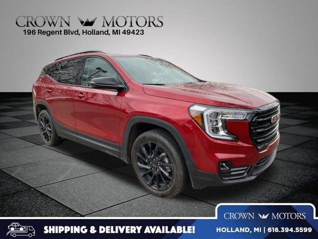 Clean CARFAX. Volcanic Red Tintcoat 2024 GMC Terrain SLT AWD 9-Speed Automatic 1.5L DOHC AWD, 2 USB Data Ports, 2 USB Data Ports w/SD Card Reader, 3.47 Final Drive Axle Ratio, 4-Wheel Disc Brakes, 6 Speakers, 6-Speaker Audio System Feature, 6-Way Power Front Passenger Seat, 8-Way Power Driver Seat Adjuster, ABS brakes, Adaptive Cruise Control, Air Conditioning, Alloy wheels, AM/FM radio: SiriusXM, Auto High-beam Headlights, Auto-dimming Rear-View mirror, Automatic temperature control, Black GMC Center Caps w/Red GMC Lettering, Black Mirror Caps, Bluetooth® For Phone, Brake assist, Bumpers: body-color, Compass, Darkened Front Grille, Delay-off headlights, Driver & Front Passenger Heated Seats, Driver door bin, Driver vanity mirror, Dual front impact airbags, Dual front side impact airbags, Electronic Stability Control, Elevation Edition, Emergency communication system: OnStar and GMC connected services capable, Four wheel independent suspension, Front anti-roll bar, Front Bucket Seats, Front Center Armrest, Front dual zone A/C, Front fog lights, Front Passenger 2-Way Power Lumbar, Front reading lights, Fully automatic headlights, Garage door transmitter, GMC Pro Safety Plus, Heated door mirrors, Heated front seats, Heated steering wheel, Illuminated entry, Lane Change Alert w/Side Blind Zone Alert, Low tire pressure warning, Memory seat, Occupant sensing airbag, Outside temperature display, Overhead airbag, Overhead console, Panic alarm, Passenger door bin, Passenger vanity mirror, Perforated Leather-Appointed Seat Trim, Power door mirrors, Power Driver Lumbar Control, Power driver seat, Power Liftgate, Power passenger seat, Power steering, Power windows, Preferred Equipment Group 4SA, Radio data system, Radio: GMC Infotainment Audio System w/8" Display, Rear anti-roll bar, Rear Cross-Traffic Alert, Rear Park Assist, Rear seat center armrest, Rear window defroster, Rear window wiper, Remote keyless entry, Roof rack: rails only, Roof-Mounted Luggage Rack Side Rails, Safety Alert Seat, Security system, SiriusXM, Skyscape Power Sunroof w/Power Sunscreen, Speed control, Speed-sensing steering, Split folding rear seat, Spoiler, Steering wheel mounted audio controls, Tachometer, Telescoping steering wheel, Tilt steering wheel, Traction control, Trip computer, Turn signal indicator mirrors, Variably intermittent wipers, Wheels: 18" x 7" Silver Painted Aluminum, Wheels: 19" Gloss Black Aluminum, Wireless Apple CarPlay/Wireless Android Auto, AWD.