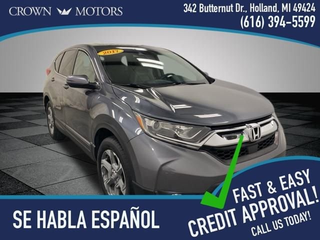 Modern Steel Metallic 2017 Honda CR-V EX-L AWD CVT 1.5L I4 DOHC 16V ** LOW MILES**, **LEATHER**, **LOCAL TRADE IN**, AWD, 18" Alloy Wheels, 4-Wheel Disc Brakes, 5.64 Axle Ratio, 8 Speakers, ABS brakes, Air Conditioning, Alloy wheels, AM/FM radio: SiriusXM, Apple CarPlay/Android Auto, Auto High-beam Headlights, Auto-dimming Rear-View mirror, Automatic temperature control, Blind Spot Information (BSI) System warning, Brake assist, Bumpers: body-color, Compass, Delay-off headlights, Driver door bin, Driver vanity mirror, Dual front impact airbags, Dual front side impact airbags, Electronic Stability Control, Exterior Parking Camera Rear, Four wheel independent suspension, Front anti-roll bar, Front Bucket Seats, Front Center Armrest, Front dual zone A/C, Front fog lights, Front reading lights, Fully automatic headlights, Garage door transmitter: HomeLink, Heated door mirrors, Heated Front Bucket Seats, Heated front seats, Illuminated entry, Leather Seat Trim, Leather Shift Knob, Low tire pressure warning, Memory seat, Occupant sensing airbag, Outside temperature display, Overhead airbag, Overhead console, Panic alarm, Passenger door bin, Passenger vanity mirror, Power door mirrors, Power driver seat, Power Liftgate, Power moonroof, Power passenger seat, Power steering, Power windows, Radio data system, Radio: AM/FM/HD/SiriusXM Audio System, Rear anti-roll bar, Rear seat center armrest, Rear window defroster, Rear window wiper, Remote keyless entry, Security system, Speed control, Speed-sensing steering, Speed-Sensitive Wipers, Split folding rear seat, Spoiler, Steering wheel mounted audio controls, Tachometer, Telescoping steering wheel, Tilt steering wheel, Traction control, Trip computer, Turn signal indicator mirrors, Variably intermittent wipers, AWD.