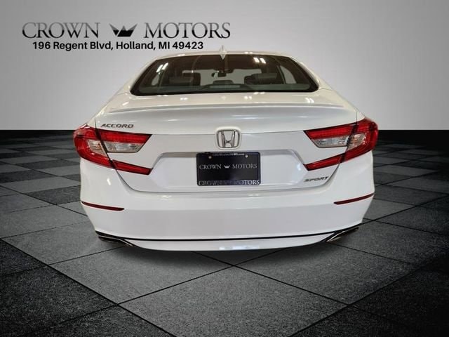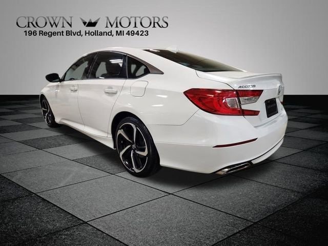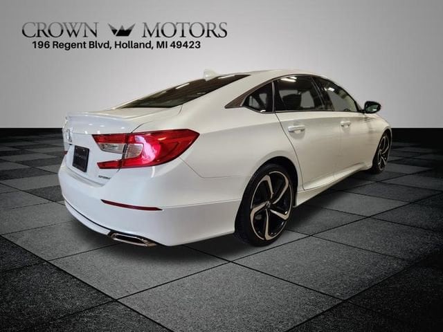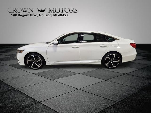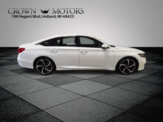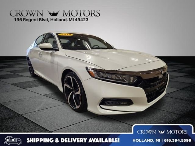 White 2018 Honda Accord Sport FWD CVT 1.5T I4 DOHC 16V Turbocharged VTEC **LOCAL TRADE IN**, Black Cloth, 4-Wheel Disc Brakes, 8 Speakers, ABS brakes, Air Conditioning, Alloy wheels, AM/FM radio, Apple CarPlay/Android Auto, Auto High-beam Headlights, Automatic temperature control, Brake assist, Bumpers: body-color, Cloth Seat Trim, Delay-off headlights, Driver door bin, Driver vanity mirror, Dual front impact airbags, Dual front side impact airbags, Electronic Stability Control, Emergency communication system: HondaLink, Exterior Parking Camera Rear, Four wheel independent suspension, Front anti-roll bar, Front Bucket Seats, Front Center Armrest, Front dual zone A/C, Front fog lights, Front reading lights, Fully automatic headlights, Illuminated entry, Knee airbag, Leather Shift Knob, Leather steering wheel, Low tire pressure warning, Occupant sensing airbag, Outside temperature display, Overhead airbag, Overhead console, Panic alarm, Passenger door bin, Passenger vanity mirror, Power door mirrors, Power driver seat, Power steering, Power windows, Radio data system, Radio: 180-Watt AM/FM Audio System, Rear anti-roll bar, Rear seat center armrest, Rear window defroster, Remote keyless entry, Security system, Speed control, Speed-sensing steering, Speed-Sensitive Wipers, Split folding rear seat, Spoiler, Steering wheel mounted audio controls, Tachometer, Telescoping steering wheel, Tilt steering wheel, Traction control, Trip computer, Variably intermittent wipers, Wheels: 19" Machine-Finished Alloy w/Black Inserts, Black Cloth.