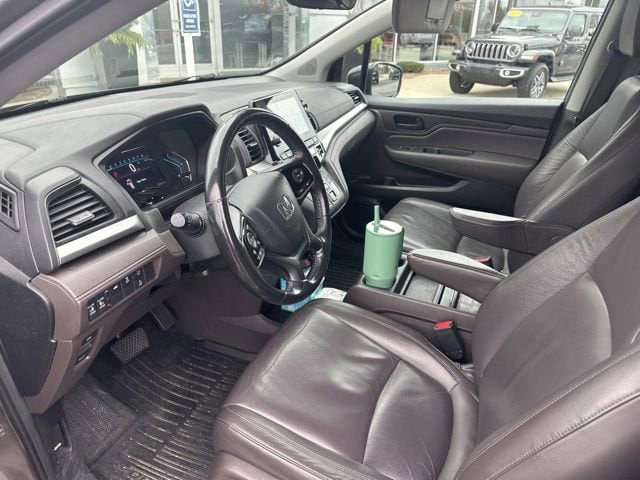 CARFAX One-Owner. Clean CARFAX. Pacific Pewter Metallic 2018 Honda Odyssey EX-L FWD 9-Speed Automatic 3.5L V6 SOHC i-VTEC 24V 3rd row seats: split-bench, 4-Wheel Disc Brakes, 4.33 Axle Ratio, 7 Speakers, ABS brakes, Air Conditioning, Alloy wheels, AM/FM radio: SiriusXM, Anti-whiplash front head restraints, Apple CarPlay/Android Auto, Auto High-beam Headlights, Auto-dimming Rear-View mirror, Automatic temperature control, Blind Spot Information (BSI) System warning, Brake assist, Bumpers: body-color, Delay-off headlights, Driver door bin, Driver vanity mirror, Driver's Seat Mounted Armrest, Dual front impact airbags, Dual front side impact airbags, Electronic Stability Control, Emergency communication system: HondaLink, Exterior Parking Camera Rear, Four wheel independent suspension, Front anti-roll bar, Front Bucket Seats, Front dual zone A/C, Front fog lights, Front reading lights, Fully automatic headlights, Garage door transmitter: HomeLink, Heated door mirrors, Heated Front Bucket Seats, Heated front seats, Illuminated entry, Knee airbag, Leather Seat Trim, Leather steering wheel, Low tire pressure warning, Memory seat, Occupant sensing airbag, Outside temperature display, Overhead airbag, Overhead console, Panic alarm, Passenger door bin, Passenger seat mounted armrest, Passenger vanity mirror, Power door mirrors, Power driver seat, Power Liftgate, Power moonroof, Power passenger seat, Power steering, Power windows, Radio data system, Radio: 160-Watt AM/FM/HD/SiriusXM Audio System, Rear air conditioning, Rear anti-roll bar, Rear reading lights, Rear seat center armrest, Rear window defroster, Rear window wiper, Reclining 3rd row seat, Remote keyless entry, Security system, Speed control, Speed-sensing steering, Speed-Sensitive Wipers, Split folding rear seat, Spoiler, Steering wheel mounted audio controls, Tachometer, Telescoping steering wheel, Tilt steering wheel, Traction control, Trip computer, Turn signal indicator mirrors, Variably intermittent wipers, Wheels: 18" Silver-Painted Alloy, **Bluetooth**, **Leather**, **Rear Back Up Camera**.