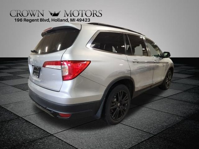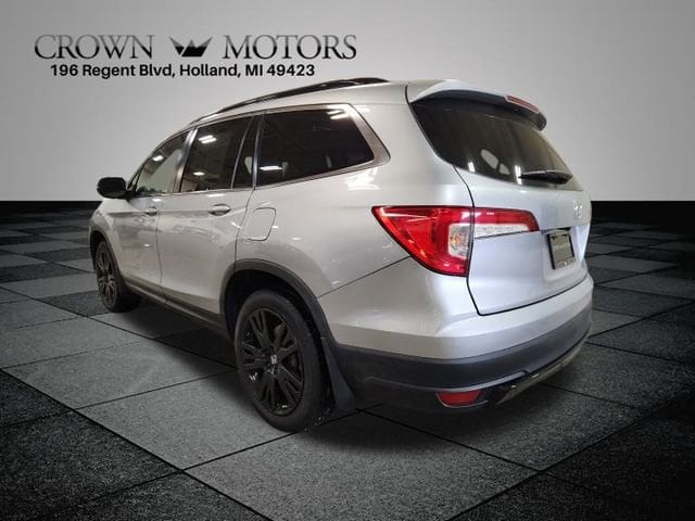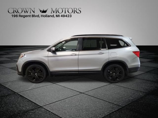 CARFAX One-Owner. Lunar Silver Metallic 2022 Honda Pilot Special Edition AWD 9-Speed Automatic 3.5L V6 24V SOHC i-VTEC **ONE OWNER**, ** LOW MILES**, **ACCIDENT FREE**, AWD, 3rd row seats: split-bench, 4-Wheel Disc Brakes, 4.33 Axle Ratio, 7 Speakers, A/V remote: CabinControl, ABS brakes, Air Conditioning, Alloy wheels, AM/FM radio: SiriusXM, Apple CarPlay/Android Auto, Auto High-beam Headlights, Auto-dimming Rear-View mirror, Automatic temperature control, Blind Spot Information (BSI) System warning, Brake assist, Bumpers: body-color, Delay-off headlights, Driver door bin, Driver vanity mirror, Dual front impact airbags, Dual front side impact airbags, Electronic Stability Control, Emergency communication system: HondaLink Assist, Exterior Parking Camera Rear, Forward collision: Collision Mitigation Braking System (CMBS) + FCW mitigation, Four wheel independent suspension, Front anti-roll bar, Front Bucket Seats, Front Center Armrest, Front dual zone A/C, Front fog lights, Front reading lights, Fully automatic headlights, Garage door transmitter: HomeLink, Heated door mirrors, Heated Front Bucket Seats, Heated front seats, Illuminated entry, Lane departure: Lane Keeping Assist System (LKAS) active, Leather Seat Trim, Low tire pressure warning, Memory seat, Occupant sensing airbag, Outside temperature display, Overhead airbag, Overhead console, Panic alarm, Passenger door bin, Passenger vanity mirror, Power door mirrors, Power driver seat, Power Liftgate, Power moonroof, Power passenger seat, Power steering, Power windows, Radio data system, Radio: 215-Watt Audio System, Rear air conditioning, Rear anti-roll bar, Rear reading lights, Rear seat center armrest, Rear window defroster, Rear window wiper, Reclining 3rd row seat, Remote keyless entry, Roof rack: rails only, Security system, Speed control, Speed-sensing steering, Speed-Sensitive Wipers, Split folding rear seat, Spoiler, Steering wheel mounted audio controls, Tachometer, Telescoping steering wheel, Tilt steering wheel, Traction control, Trip computer, Turn signal indicator mirrors, Variably intermittent wipers, Wheels: 20" Exclusive Gloss Black Alloy, AWD.