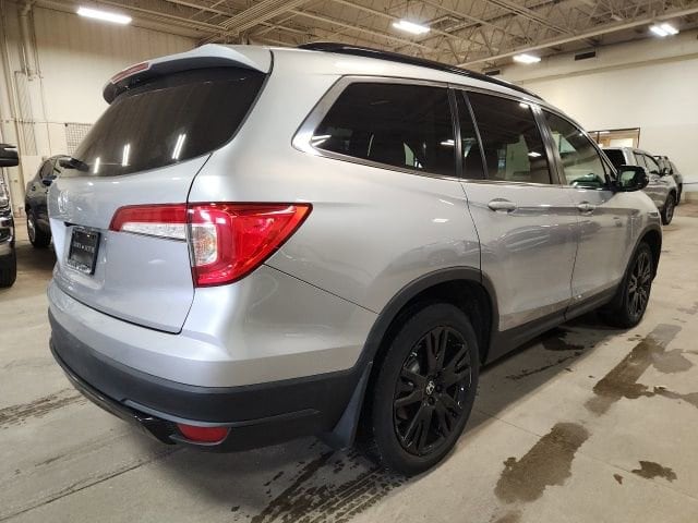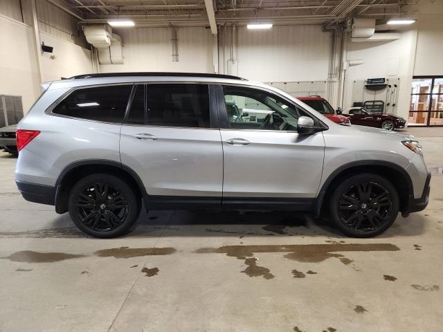 CARFAX One-Owner. Clean CARFAX. Lunar Silver Metallic 2022 Honda Pilot Special Edition AWD 9-Speed Automatic 3.5L V6 24V SOHC i-VTEC **ONE OWNER**, ** LOW MILES**, **ACCIDENT FREE**, AWD, 3rd row seats: split-bench, 4-Wheel Disc Brakes, 4.33 Axle Ratio, 7 Speakers, A/V remote: CabinControl, ABS brakes, Air Conditioning, Alloy wheels, AM/FM radio: SiriusXM, Apple CarPlay/Android Auto, Auto High-beam Headlights, Auto-dimming Rear-View mirror, Automatic temperature control, Blind Spot Information (BSI) System warning, Brake assist, Bumpers: body-color, Delay-off headlights, Driver door bin, Driver vanity mirror, Dual front impact airbags, Dual front side impact airbags, Electronic Stability Control, Emergency communication system: HondaLink Assist, Exterior Parking Camera Rear, Forward collision: Collision Mitigation Braking System (CMBS) + FCW mitigation, Four wheel independent suspension, Front anti-roll bar, Front Bucket Seats, Front Center Armrest, Front dual zone A/C, Front fog lights, Front reading lights, Fully automatic headlights, Garage door transmitter: HomeLink, Heated door mirrors, Heated Front Bucket Seats, Heated front seats, Illuminated entry, Lane departure: Lane Keeping Assist System (LKAS) active, Leather Seat Trim, Low tire pressure warning, Memory seat, Occupant sensing airbag, Outside temperature display, Overhead airbag, Overhead console, Panic alarm, Passenger door bin, Passenger vanity mirror, Power door mirrors, Power driver seat, Power Liftgate, Power moonroof, Power passenger seat, Power steering, Power windows, Radio data system, Radio: 215-Watt Audio System, Rear air conditioning, Rear anti-roll bar, Rear reading lights, Rear seat center armrest, Rear window defroster, Rear window wiper, Reclining 3rd row seat, Remote keyless entry, Roof rack: rails only, Security system, Speed control, Speed-sensing steering, Speed-Sensitive Wipers, Split folding rear seat, Spoiler, Steering wheel mounted audio controls, Tachometer, Telescoping steering wheel, Tilt steering wheel, Traction control, Trip computer, Turn signal indicator mirrors, Variably intermittent wipers, Wheels: 20" Exclusive Gloss Black Alloy, AWD.