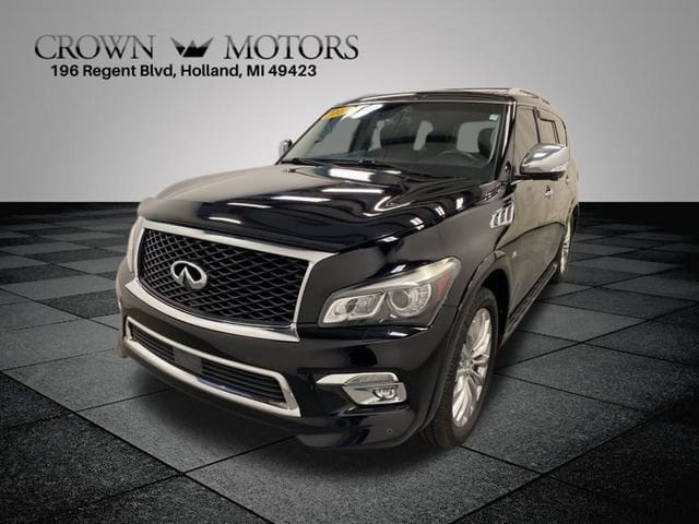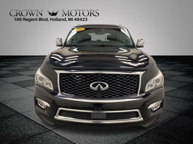 Black Obsidian 2016 INFINITI QX80 Limited 4WD 7-Speed Automatic 5.6L V8 **LEATHER**, **LOCAL TRADE IN**, 4WD, ABS brakes, Active Cruise Control, Alloy wheels, Electronic Stability Control, Front dual zone A/C, Heated door mirrors, Heated Front Bucket Seats, Heated front seats, Heated rear seats, Illuminated entry, Low tire pressure warning, Navigation System, Power Liftgate, Power moonroof, Remote keyless entry, Traction control.