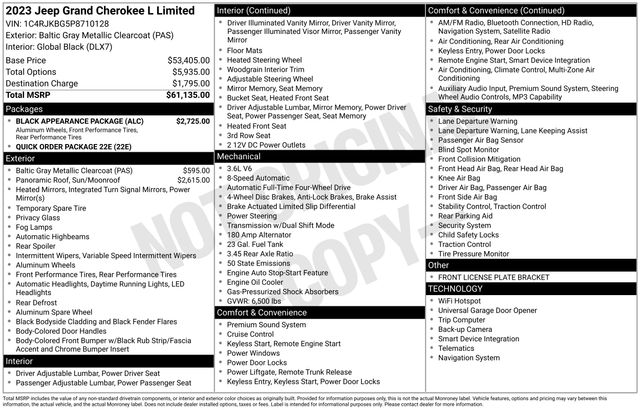 Experience the perfect balance of style, capability, and technology in this 2023 Jeep Grand Cherokee L Limited. Visit our showroom today and let us demonstrate how this exceptional SUV can elevate your driving experience.