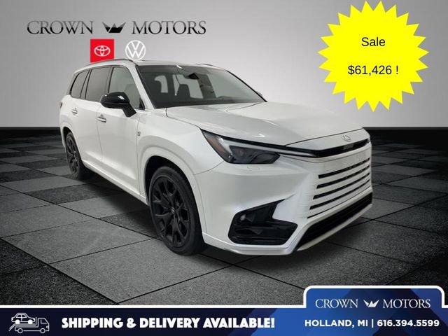 12 Speakers, 3rd row seats: split-bench, Accessory Package (K3), Accessory Package (Z1), Air Conditioning, All-Weather Floor Liners, Alloy wheels, AM/FM radio, Auto High-beam Headlights, Auto tilt-away steering wheel, Auto-dimming door mirrors, Auto-dimming Rear-View mirror, Automatic temperature control, Brake assist, Bumpers: body-color, Cargo Net, Carpet Cargo Mat, Convenience Package, Delay-off headlights, Digital Key & SmartAccess Card Key, Door Edge Film, Driver door bin, Driver vanity mirror, Dual front impact airbags, Dual front side impact airbags, Electronic Stability Control, Emergency communication system: Safety Connect (10-year trial), Exterior Parking Camera Rear, Four wheel independent suspension, Front anti-roll bar, Front Bucket Seats, Front Center Armrest, Front dual zone A/C, Front fog lights, Front reading lights, Fully automatic headlights, Garage door transmitter: HomeLink, Heated door mirrors, Heated front seats, Heated steering wheel, Illuminated Cargo Sills, Illuminated Door Sills, Illuminated entry, Key Gloves, Knee airbag, Lane Keeping System, Leather Shift Knob, Leather steering wheel, Low tire pressure warning, Navigation system: Drive Connect Cloud Navigation (3-year trial subscription included), NuLuxe Seat Trim, Occupant sensing airbag, Outside temperature display, Overhead airbag, Panic alarm, Passenger door bin, Passenger vanity mirror, Power door mirrors, Power driver seat, Power Liftgate, Power passenger seat, Power steering, Power windows, Radio data system, Radio: Lexus Interface, Rain sensing wipers, Rear air conditioning, Rear anti-roll bar, Rear reading lights, Rear window defroster, Rear window wiper, Reclining 3rd row seat, Remote keyless entry, Security system, Side Puddle Lamp, Speed control, Speed-sensing steering, Split folding rear seat, Spoiler, Steering wheel mounted audio controls, Tachometer, Telescoping steering wheel, Tilt steering wheel, Traction control, Trip computer, Turn signal indicator mirrors, Variably intermittent wipers, Wheel Locks, Wireless Apple CarPlay/Wireless Android Auto.