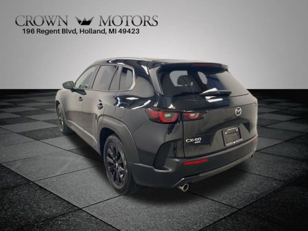 CARFAX One-Owner. Clean CARFAX. Jet Black 2024 Mazda CX-50 2.5 S Preferred Package AWD 6-Speed Automatic SKYACTIV® 2.5L 4-Cylinder DOHC 16V **ONE OWNER**, **ACCIDENT FREE**, AWD, 4-Wheel Disc Brakes, 4.367 Axle Ratio, 8 Speakers, ABS brakes, Air Conditioning, Alloy wheels, AM/FM radio, AppLink/Apple CarPlay and Android Auto, Auto High-beam Headlights, Automatic temperature control, Brake assist, Bumpers: body-color, Delay-off headlights, Driver door bin, Driver vanity mirror, Dual front impact airbags, Dual front side impact airbags, Electronic Stability Control, Emergency communication system: MAZDA CONNECT, Exterior Parking Camera Rear, Front anti-roll bar, Front Bucket Seats, Front Center Armrest, Front dual zone A/C, Front reading lights, Front wheel independent suspension, Fully automatic headlights, Half Leatherette Seat Trim, Heated door mirrors, Heated Front Bucket Seats, Heated front seats, Illuminated entry, Knee airbag, Leather Shift Knob, Leather steering wheel, Low tire pressure warning, Occupant sensing airbag, Outside temperature display, Overhead airbag, Overhead console, Panic alarm, Passenger door bin, Passenger vanity mirror, Power door mirrors, Power driver seat, Power Liftgate, Power steering, Power windows, Radio data system, Radio: AM/FM/HD Audio System, Rain sensing wipers, Rear seat center armrest, Rear window defroster, Rear window wiper, Remote keyless entry, Speed control, Speed-sensing steering, Split folding rear seat, Spoiler, Steering wheel mounted audio controls, Tachometer, Telescoping steering wheel, Tilt steering wheel, Traction control, Trip computer, Turn signal indicator mirrors, Variably intermittent wipers, Wheels: 17" x 7J Aluminum Alloy, AWD.