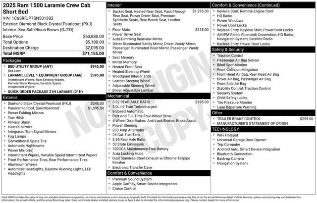 This 2025 Ram 1500 Laramie is a true testament to the brand's commitment to excellence. With its exceptional performance, premium features, and striking good looks, it's a vehicle that will elevate your driving experience and turn heads wherever you go. Schedule a test drive today and discover the power and sophistication of this remarkable pickup.