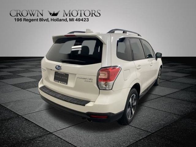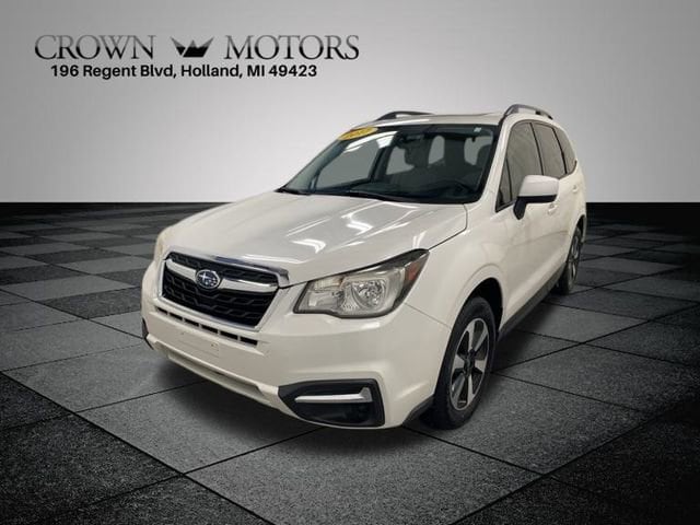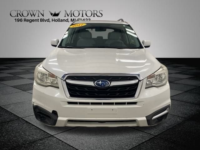 Clean CARFAX. Crystal White Pearl 2017 Subaru Forester 2.5i Premium AWD Lineartronic CVT 2.5L 4-Cylinder DOHC 16V VVT ** LOW MILES**, **ACCIDENT FREE**, **LOCAL TRADE IN**, AWD, 17" Alloy Wheels, 3.70 Axle Ratio, 4-Wheel Disc Brakes, 6 Speakers, ABS brakes, Air Conditioning, All-Weather Package, Alloy wheels, AM/FM radio: SiriusXM, Automatic temperature control, Brake assist, Bumpers: body-color, Cargo Cover - Manual Rear Gate, CD player, Cloth Upholstery, Driver door bin, Driver vanity mirror, Dual front impact airbags, Dual front side impact airbags, Electronic Stability Control, Emergency communication system: STARLINK, Exhaust Tip, Exterior Parking Camera Rear, Four wheel independent suspension, Front anti-roll bar, Front Bucket Seats, Front Center Armrest, Front reading lights, Heated Exterior Mirrors, Heated Front Seats, Illuminated entry, Knee airbag, Low tire pressure warning, Occupant sensing airbag, Outside temperature display, Overhead airbag, Overhead console, Panic alarm, Passenger door bin, Passenger vanity mirror, Power door mirrors, Power driver seat, Power moonroof, Power steering, Power windows, Radio data system, Radio: Subaru Starlink 7.0" Multimedia Plus System, Rear anti-roll bar, Rear Bumper Cover, Rear seat center armrest, Rear window defroster, Rear window wiper, Remote keyless entry, Roof rack: rails only, Security system, Speed control, Split folding rear seat, Spoiler, Steering wheel mounted audio controls, Tachometer, Telescoping steering wheel, Tilt steering wheel, Traction control, Trip computer, Variably intermittent wipers, Windshield Wiper De-Icer, AWD.