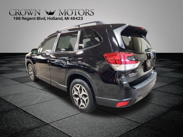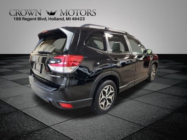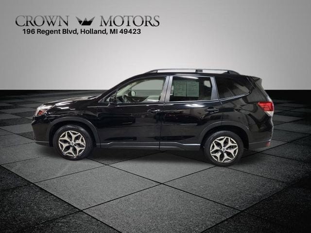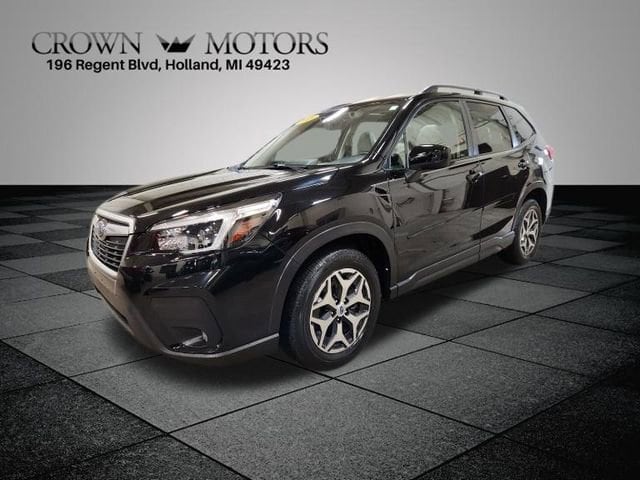 CARFAX One-Owner. Clean CARFAX. Crystal Black Silica 2021 Subaru Forester Premium AWD Lineartronic CVT 2.5L 4-Cylinder DOHC 16V VVT 3.70 Axle Ratio, 4-Wheel Disc Brakes, 6 Speakers, ABS brakes, Air Conditioning, All-Weather Floor Liners, Alloy wheels, AM/FM radio: SiriusXM, Auto High-beam Headlights, Auto-Dimming Mirror w/Compass, Automatic temperature control, Brake assist, Bumpers: body-color, CD player, Cloth Upholstery, Crystal Black Silica Body Side Molding, Driver door bin, Driver vanity mirror, Dual front impact airbags, Dual front side impact airbags, Electronic Stability Control, Emergency communication system: STARLINK Safety and Security (Subscription Required), Exterior Parking Camera Rear, Four wheel independent suspension, Front anti-roll bar, Front Bucket Seats, Front Center Armrest, Front fog lights, Front reading lights, Fully automatic headlights, Heated door mirrors, Heated Front Bucket Seats, Heated front seats, Illuminated entry, Knee airbag, Low tire pressure warning, Occupant sensing airbag, Outside temperature display, Overhead airbag, Overhead console, Panic alarm, Passenger door bin, Passenger vanity mirror, Power door mirrors, Power driver seat, Power moonroof: Panoramic, Power steering, Power windows, Radio data system, Radio: Subaru Starlink 6.5" Multimedia Plus System, Rear anti-roll bar, Rear Bumper Cover, Rear seat center armrest, Rear window defroster, Rear window wiper, Remote keyless entry, Roof rack: rails only, Security system, Speed control, Speed-sensing steering, Split folding rear seat, Spoiler, Standard Model, STARLINK/Apple CarPlay/Android Auto, Steering wheel mounted audio controls, Tachometer, Telescoping steering wheel, Tilt steering wheel, Traction control, Trip computer, Variably intermittent wipers, Wheels: 17" x 7.0J Black Machine Finish Alloy.